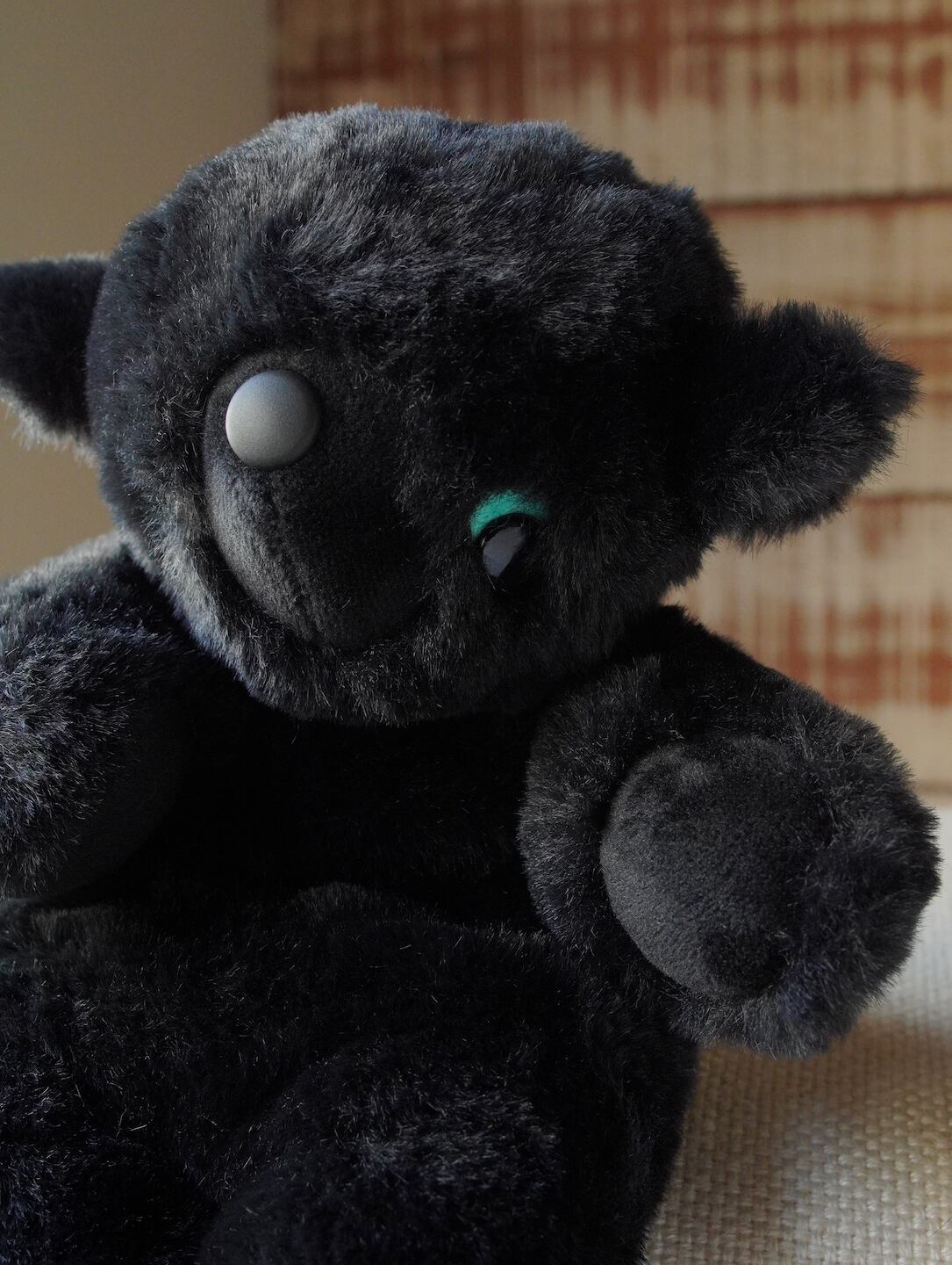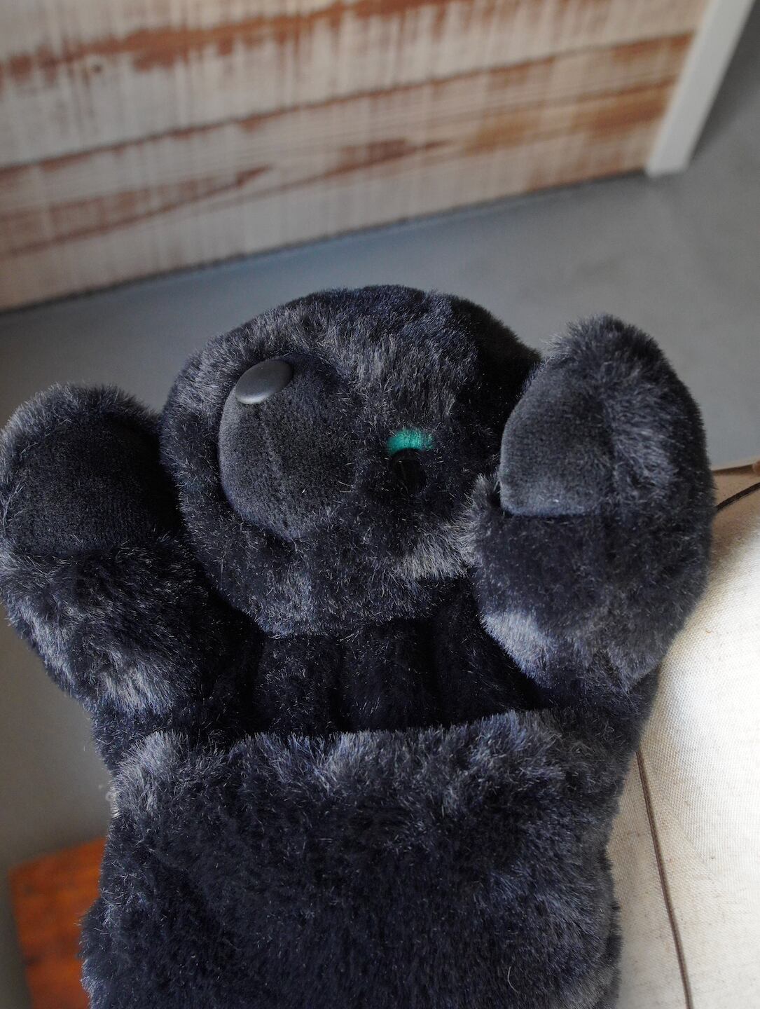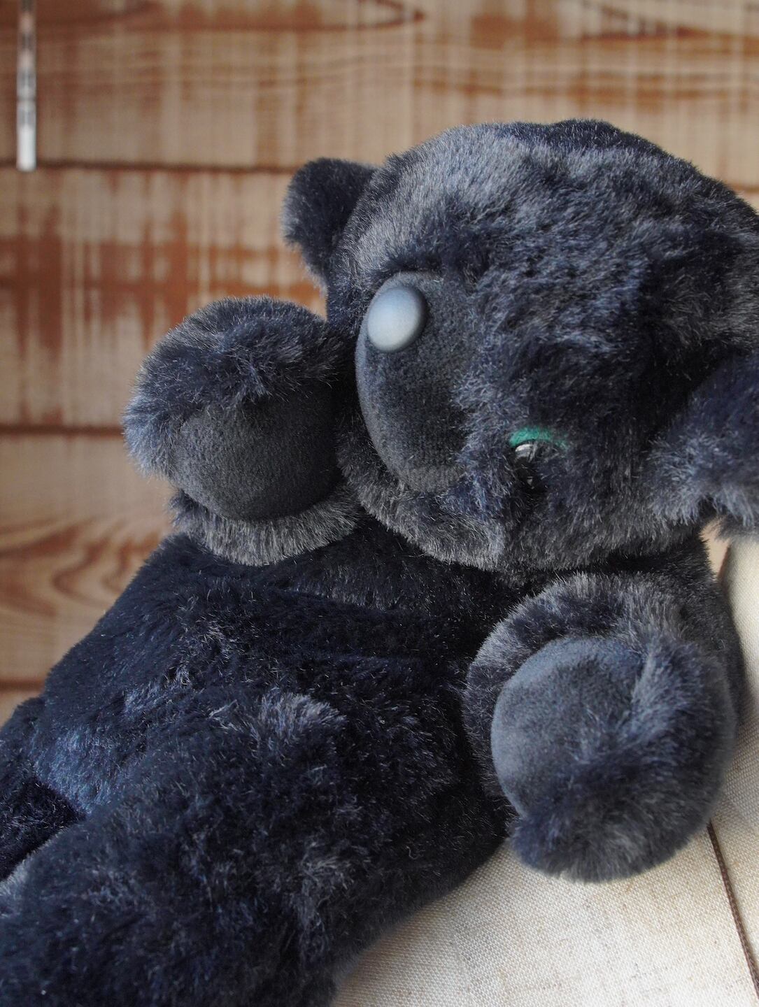 お口、手、耳・尾裏に「なめらか生地」のブラックを使用した、黒onブラック、「黒」にこだわった逸品です!