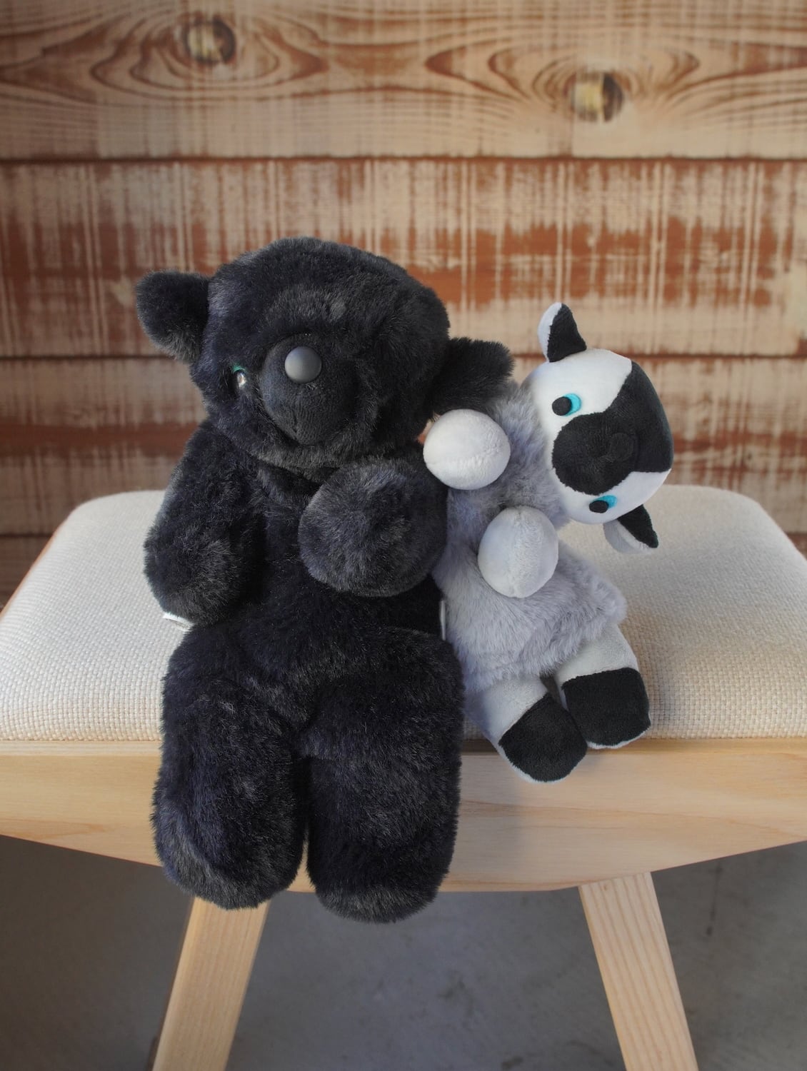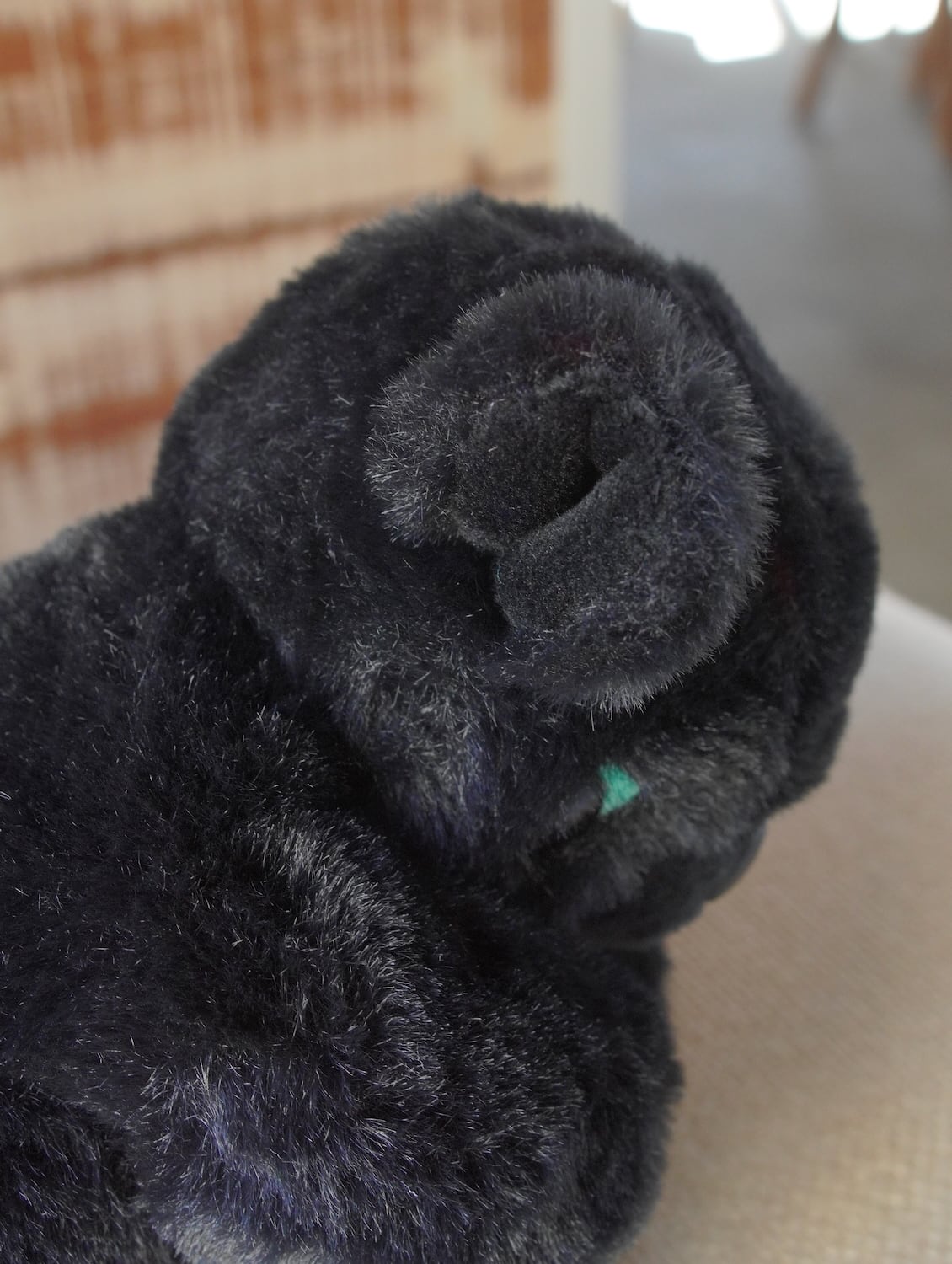 お口、耳・尾裏に「なめらか生地」のブラックを使用した、黒onブラック、「黒」にこだわった逸品です!※手は切替なしのタイプです。