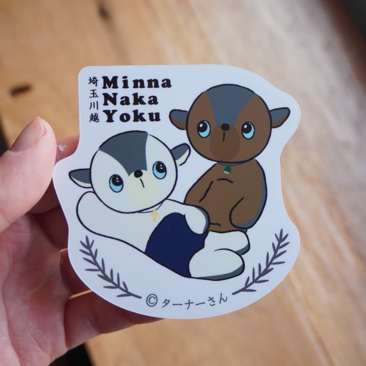 埼玉県川越市の蔵づくりの街並みをイメージした「くらターナーさん」、観光名所「時の鐘」をイメージした「かねターナーさん」のイラストを左右に配し、「Minna Naka Yoku」のメッセージを込めた、日本の歴史、文化、©️ターナーさんかわいい道の探求、そして平和への願いを凝縮した逸品となっております。