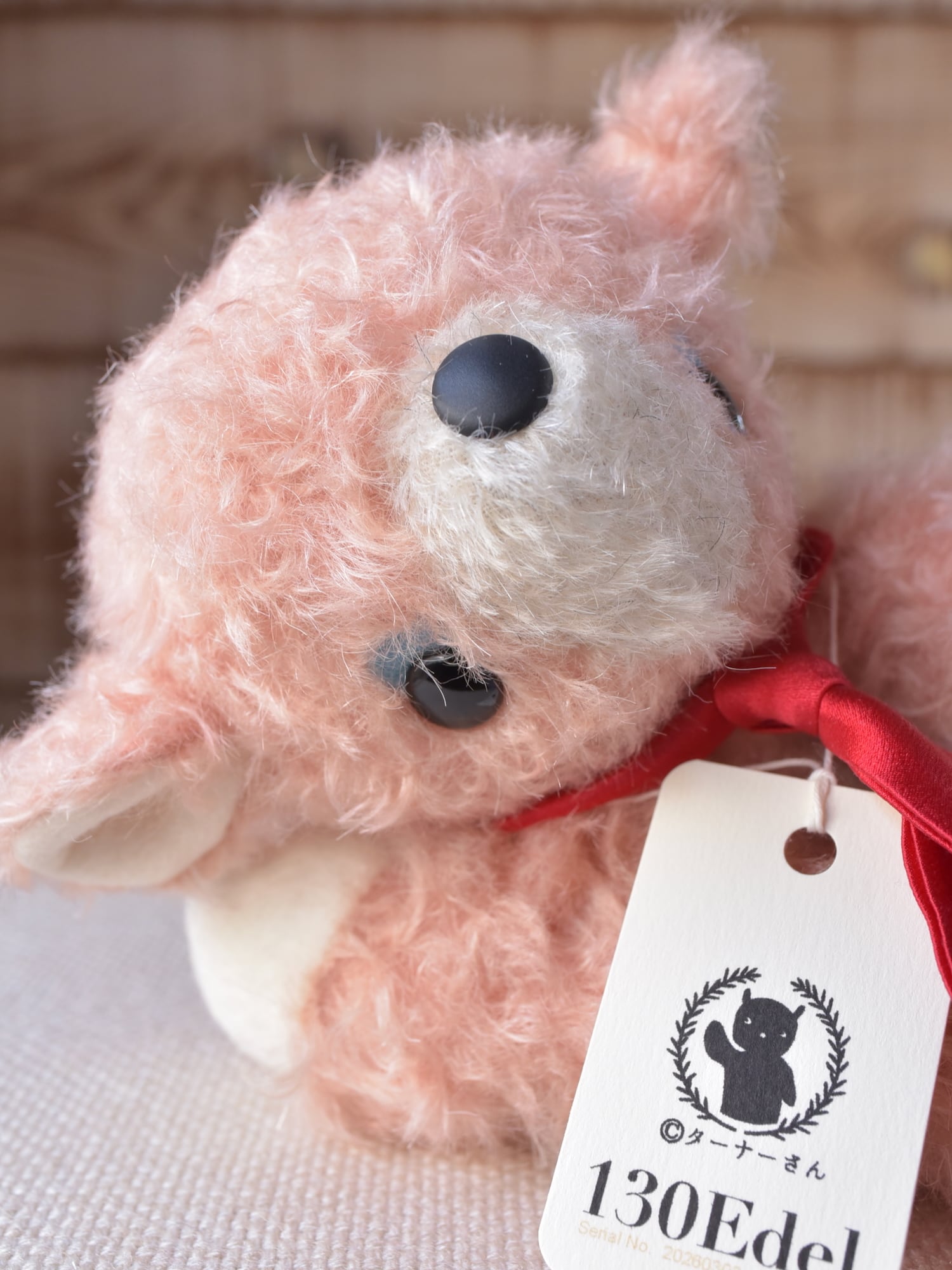 ©ターナーさんは、手作り品のため全て一点物(お顔の表情が異なる等)であることも特徴の一つですが、このシリーズではあらためて「手作りのよいところ」に向き合い、原点回帰し、製作は縫製から仕上げまでを並行作業無しで一点ずつ丁寧に行い、誕生日(製作・完成日)をシリアルナンバー/©ターナーさんのモデルナンバーに冠し「手作りの一点物」としての希少性、価値を高めました(出生証明書をお付けしています)。