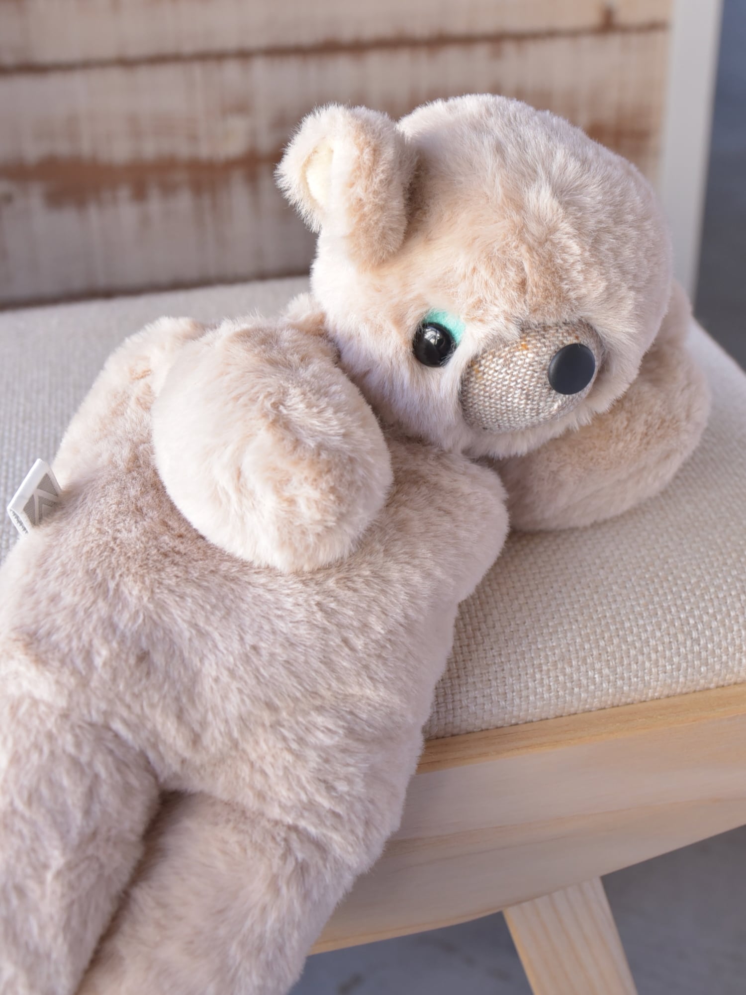 オリジナルサイズの1.3倍サイズの©ターナーさんです。内部セパレート構造を採用し、足先にも綿を入れることで全体重量を抑えつつペレット(お米状プラスチック)がお腹〜お尻内を程よく移動できるようになり、大きくなってもオリジナルサイズ同様のくったり感を実現しました!