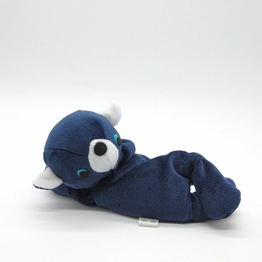 こちらの商品は紺色ちゃんです。紺色ちゃんは染料の関係か他の子より手触りが滑らかでございます。お兄ちゃん的存在でしょうかねー