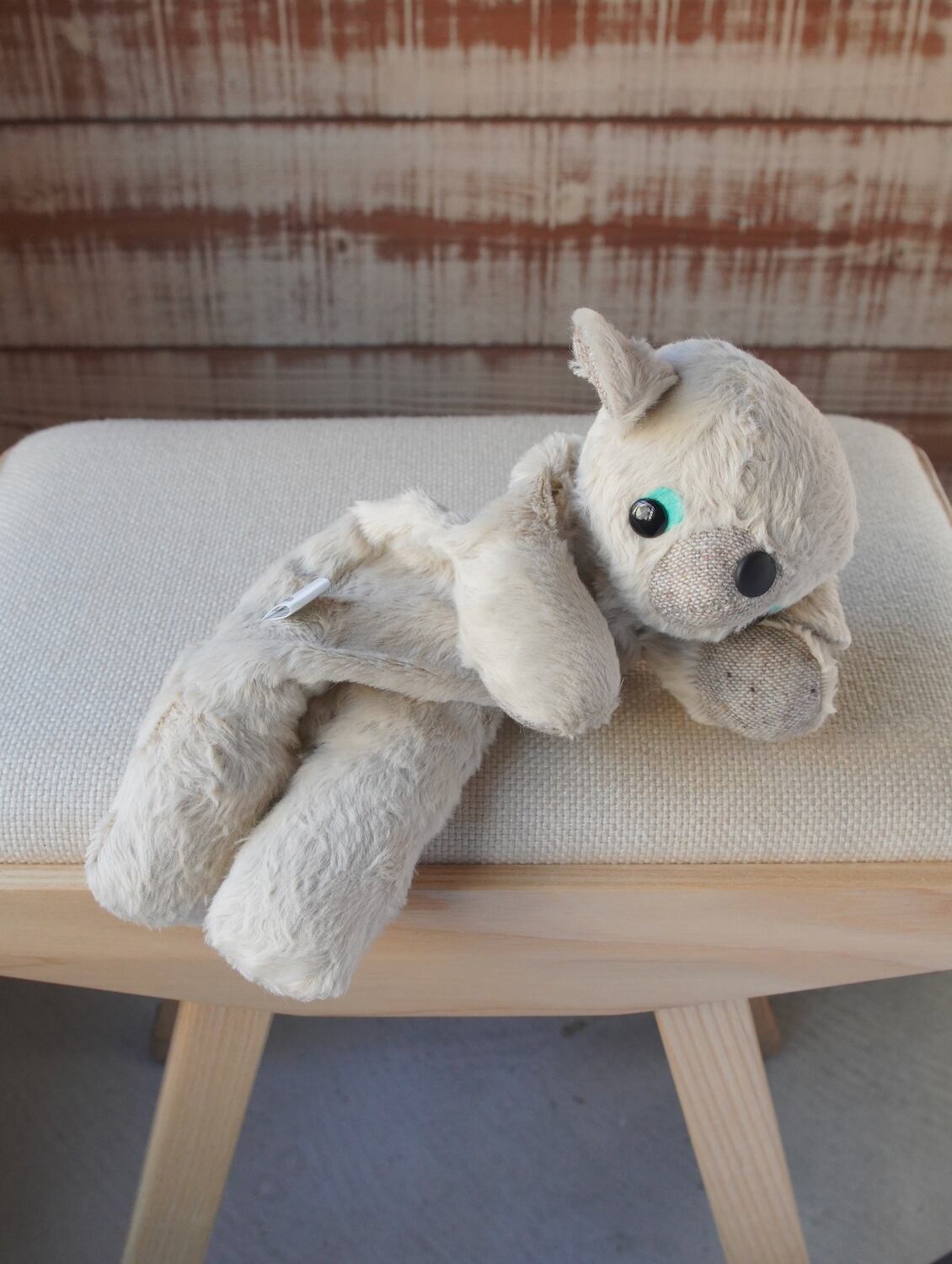オリジナルサイズの1.3倍サイズの©ターナーさんです。内部セパレート構造を採用し、足先にも綿を入れることで全体重量を抑えつつペレット(お米状プラスチック)がお腹〜お尻内を程よく移動できるようになり、大きくなってもオリジナルサイズ同様のくったり感を実現しました!