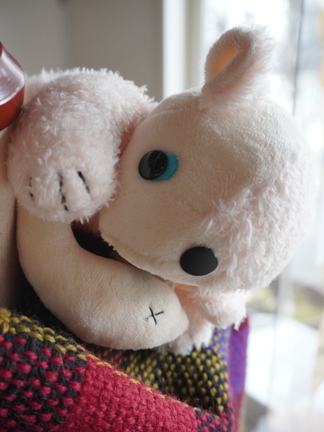 オリジナルサイズの1.3倍サイズの©ターナーさんです。内部セパレート構造を採用し、足先にも綿を入れることで全体重量を抑えつつペレット(お米状プラスチック)がお腹〜お尻内を程よく移動できるようになり、大きくなってもオリジナルサイズ同様のくったり感を実現しました!