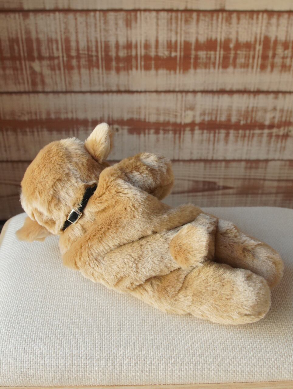 直毛短髪で毛量がとても多いブロンドカラーのファーです。130サイズではじめての蝶ネクタイをお付けしました。パッチンボタンで取り外し可です。ややお疲れな雰囲気が刺さる人には刺さるはず!